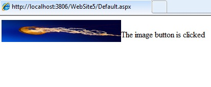 <form id=”form1” runat=”server”> <div> <asp:ImageButton ID=”ImageButton1” runat=”server” ImageAlign=”Left” ImageUrl==”~/Image/Jellyfish.jpg” Height=”43px” onclick =”ImageButton1_Click” Width=”234px” /> <br/> <asp:Label ID=”lbl1” runat=”server”></asp:Label> </div> </form>