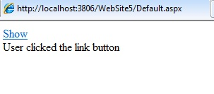 <form id=”form1” runat=”server”> <div> <asp:LinkButton ID=”LinkButton1” runat=”server” Text=”Show” Font-Size=”Medium” onclick=”LinkButton1_Click” ></asp:LinkButton><br/> <asp:Label ID=”lbl2” runat=”server”></asp:Label> </div> </form>