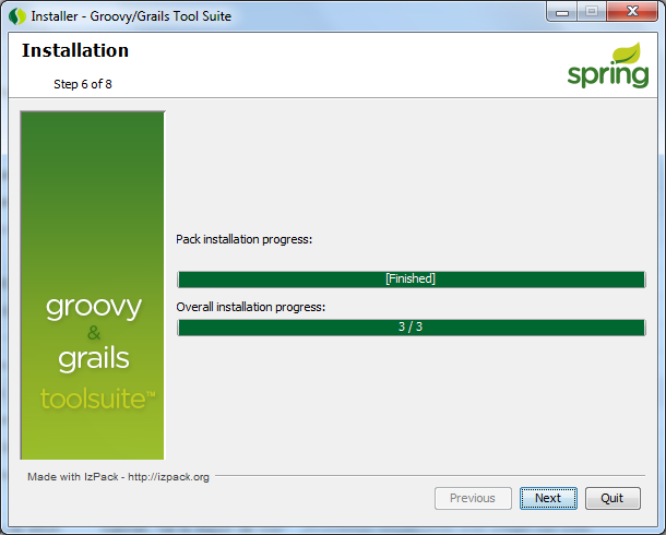 - Double click on the downloaded file (i.e: groovy-grails-tool-suite-3.4.0.RELEASE-e4.3.1-win32-installer.exe) and install the Groovy/Grails Tool Suite.