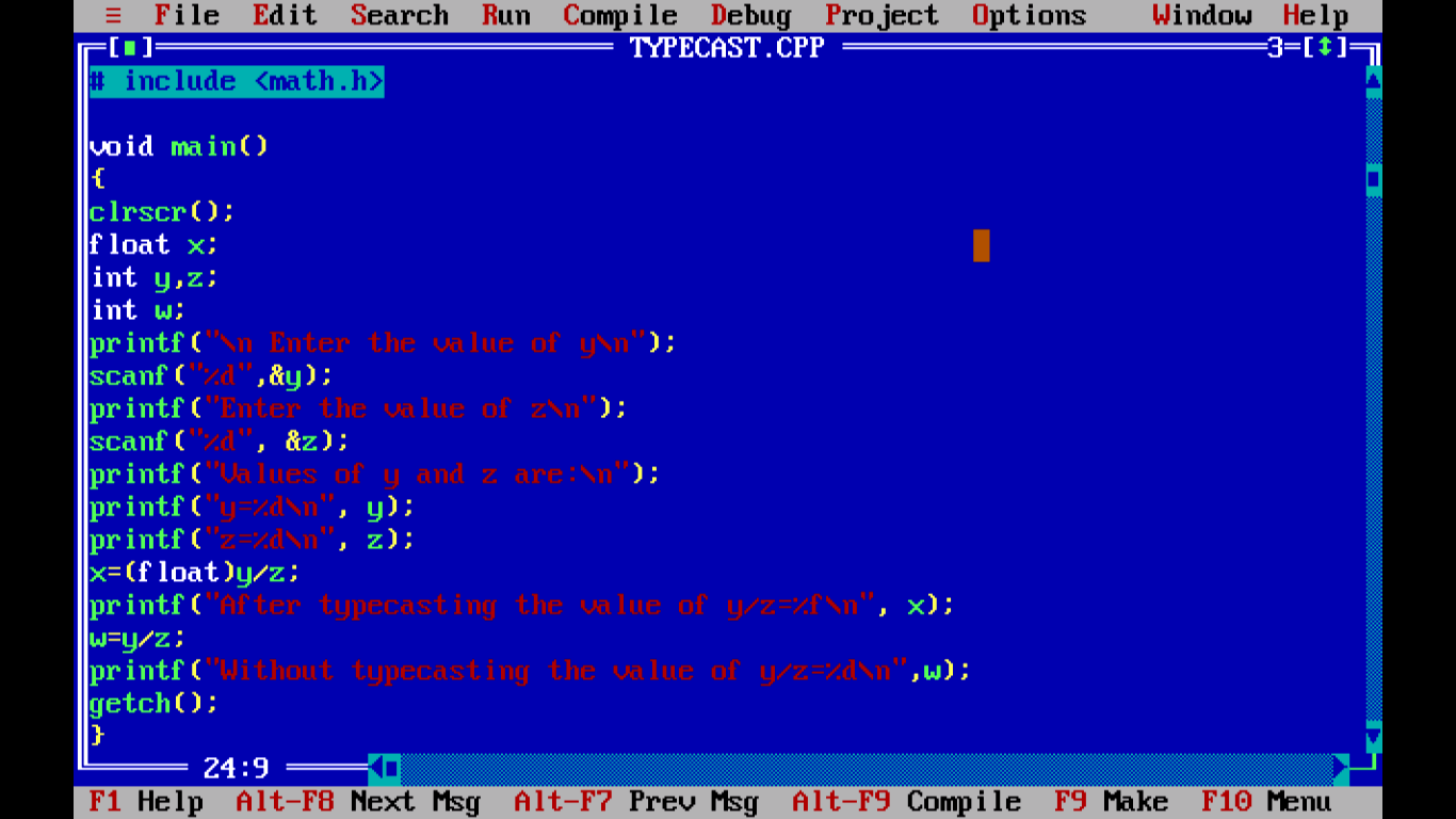 Figure - Snapshot of program to demonstrate typecasting in C