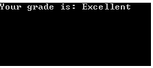 Console.WriteLine(“Your grade is : Excellent”);