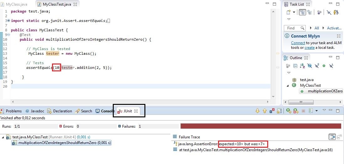 AssertEquals (7, tester. addition (2, 5));